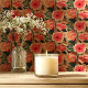 Embrace timeless elegance with this vintage-inspired floral wallpaper. A captivating pattern of stylised blossoms in shades of coral and peach dance against a backdrop of lush green foliage, creating a lively and sophisticated atmosphere. This peel and stick wallpaper is easy to apply and remove, making it perfect for adding a touch of classic charm to any room.