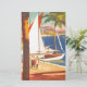 Special Vintage European Travel Advertisements - Beach, village, people, palm trees, blue sea and sky illustration