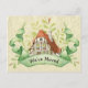 A charming vintage cottage with a red tile roof sits on antique cream parchment paper in a bouquet of green branches. The banner in front of the house says, "We've moved," announcing your address change. The back of the postcard can easily be personalised with your new address, phone/email and other information you need your friends and family to know.
