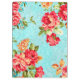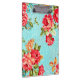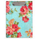 A beautiful shabby chic vintage cottage red & orange p roses set on a turquoise blue background flower floral pattern feminine girly clipboard
