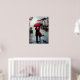 Replica art print of a couple in love holding red umbrella in Mediterranean city with a small Scottish Terrier.