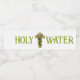 This is a vintage water bottle label with an illustration of a cross with spring flowers and the text holy water in green text (customisable).