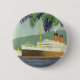 Vintage cruise ship on the water with palm tree illustration from antique travel poster.