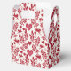 A Victorian-inspired look of Cupids, hearts, and leaves arranged like a lush vintage wallpaper pattern in antique red on white