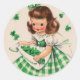 Vintage Cute Girl Shamrock St Patrick's Day Card Classic Round Sticker