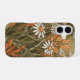 Retro illustration of a garden filled with stylized daisies in natural and warm tones.