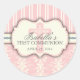 A lovely design of damask and stripes in a soft, feminine pink and cream colour scheme. Adorned with a coordinating cross, it's appropriate for any sacramental celebration, and each text area is customisable. Makes a beautiful envelope seal or favour sticker for your daughter's First Communion, Christening, or Confirmation.