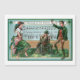 Festive and colourful vintage couple kicking up their heels on the grass while a seated man plays the flute with music notes and lyrics to "Wearing of the Green" and shamrocks in background.