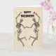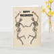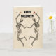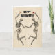 Send spooky, gothic greetings this Halloween with a card that captures frightful fun and vintage glamour! The design features spooky dancing skeletons raising wine glasses beneath a "Happy Halloween!" Typography.