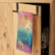 Vintage dandelion abstract pattern kitchen towel featuring delicate seed heads layered over rich teal, pink, and muted purple watercolor textures. Dreamy and artistic with an ethereal mixed-media aesthetic, this seamless design is ideal for botanical art lovers, boho style fans, nature enthusiasts, and vintage-inspired decor admirers.