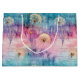 Vintage dandelion abstract pattern gift bag featuring delicate seed heads layered over rich teal, pink, and muted purple watercolor textures. Dreamy and artistic with an ethereal mixed-media aesthetic, this seamless design is ideal for botanical art lovers, boho style fans, nature enthusiasts, and vintage-inspired decor admirers.