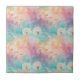 Vintage dandelion abstract pattern ceramic tile featuring delicate seed heads layered over rich teal, pink, and muted purple watercolor textures. Dreamy and artistic with an ethereal mixed-media aesthetic, this seamless design is ideal for botanical art lovers, boho style fans, nature enthusiasts, and vintage-inspired decor admirers.