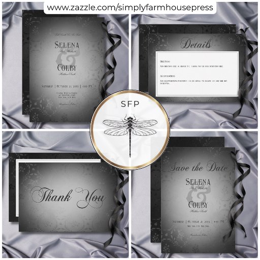 Embrace the mysterious allure of your special day with this vintage inspired design. This simple, darkly elegant wedding invitation design features a background of black on black filigree damask silk. The text appears on a soft white blur oval overlay, giving the invitation a hauntingly mysterious and beautiful appearance. The back carries over the design with the simple black damask background. It's part of the Vintage Dark Gothic Black Damask Wedding suite of cards created by Simply Farmhouse Press.