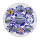 Vintage Delft Blue Delftware Holland Pattern style Round Cheese Cutting Board. Beautiful vintage old Delft Blue style pattern kitchen cutting board with 9 fully customisable typical Dutch pictures, change and/ or add your own images! Typical Holland images are: flowers field and windmill landscape, Zaanse Schans windmills, Amsterdam cityscape, tasty Dutch snack bitterbal with Dutch flag, sailing boat, tulips flower bouquet, parked blue bicycle, grazing cow and Dutch wooden shoes (clogs). This unique Holland souvenir kitchen gift is fully customisable, add your texts and images!