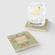 Vintage Design Sage Green Pink Roses Stone Coaster