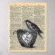 Vintage Dictionary page with Bird and Teacup Poster