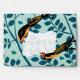 Funky Cute Bird Cage Tangerine and Solar Power Yellow Art Deco Inspired Birds Teal and Aqua Tree Wedding Invitations on Moorish Trellis Tile Pattern With Musical Notes - This Day I Marry My Best Friend on the Back -