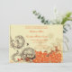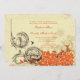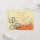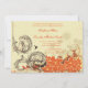 This 5x7 grunge stylish wedding invite has a distressed cream background with a vintage tropical orange hibiscus design at the bottom. To the left, there is an off white and brown ornate scroll design with a bird flying from the middle. In the middle, you can easily customise this with your wedding ceremony information. These colours would be great for an autumn/fall wedding, but could be used anytime of the year!