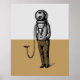 A vintage illustration with a modern flair, features antique underwater diver illustration on colorblock background