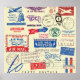 stamp, vintage, mail, postage, illustration, retro, postman, letter, antique, set, background, texture, decor, frame, sale, circle, grunge, flag, tag, sign