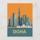 Vintage Doha Qatar Skyline Travel Poster Postcard
