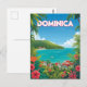 Escape to paradise with this vintage-style postcard featuring the breathtaking beauty of Dominica. The artwork captures the island’s lush, tropical landscape, from vibrant flowers and towering palm trees to the clear blue waters of the bay. The retro design evokes a classic, carefree island vacation, making it perfect for a souvenir, a note to a friend, or a beautiful piece of art for your home.