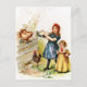 Cute vintage drawing of farmers children feeding the pig. this illustration comes from the book: Friendly animals (1905)
