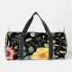 Botanical Garden vintage drawing with wildflowers Duffel Bag styling in Black (Midnight), yellow, red colours including red poppy, yellow blossoms, lavender wild plants.