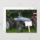 A close up photograph of a dusky blue old vintage tractor with a handmade for sale sign propped up against the front, with a hint of a red tractor alongside it. Great for vintage farm lovers.