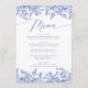 Vintage Dusty Blue Floral Chinoiserie Botanical Menu
