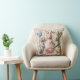 Decorative throw pillow featuring vintage Easter bunnies in quilted patchwork print design. Three adorable fabric-style rabbits with Easter egg basket printed image. Cottage core shabby chic aesthetic perfect for spring home decor, living room, bedroom, or nursery. Nostalgic vintage charm print.