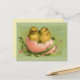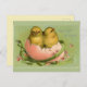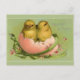 This postcard features a vintage illustration of two Easter chicks hatching from a pink egg.