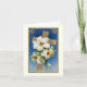 Pretty, white lilies on a gold cross against a blue background. Greeting: A Happy Easter. Image of Vintage Easter Postcard on an ivory background.
