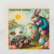 A vintage painting of the Easter Hare dressed in finery. He's presenting the tortoise with a lovely large decorated Easter egg, as a prize for winning the race. This picture is reminiscent of the story of the Hare and the Tortoise, but I twisted it into an Easter theme. This would be a delightful, inexpensive card to give a child, or anyone really, who collects Easter memorabilia. It will create happy memories. Room for writing on the back of the card under a small version of the front picture. Created with the assistance of Copilot Designer (bing.com).
