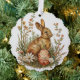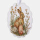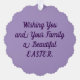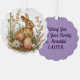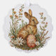 Cute, vintage picture of a bunny sitting in flowers with a coloured egg, is featured on this paper ornament Easter greeting card. Back of ornament reads, "Wishing You and Your Family a Beautiful EASTER". Includes ribbon to tie onto, and hang your Paper Ornament Card. A sweet card to send family and friends for Easter!