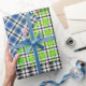 Colourful plaid tissue paper with a vintage like effect in a mix of blue, pink, purple, green black and white plaid. For gift wrapping, decoupage, or linings. Greenleaf effect is applied to the paper design.