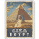 Discover the timeless allure of ancient Egypt with this striking vintage-style travel poster featuring the majestic Great Pyramid of Giza, an iconic pharaoh's head, and the vibrant desert landscape. Perfect for home décor or as a unique gift.