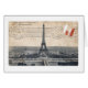 This vintage postcard features a panoramic view of the Eiffel Tower. This 1912 postcard is yellowed with age and bears the postmark as well as a stamp that is almost peeled away.