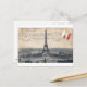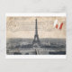 This vintage postcard features a panoramic view of the Eiffel Tower. This 1912 postcard is yellowed with age and bears the postmark as well as a stamp that is almost peeled away.