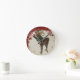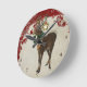 Vintage Elegance Christmas Deer Antlers Damask Round Clock
