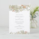 This invitation is a celebration of the legacy of William Morris, showcasing the intricate 'Golden Lily' pattern that epitomises the beauty of the Arts and Crafts movement. The design features a sophisticated colour palette of olive green, ivory, and gold, with accents of coral and pale blue. The detailed floral and foliage motifs are exquisitely arranged to create a sense of depth and texture, inviting the eye to explore the interplay of colour and form. The overall effect is one of timeless elegance, perfect for a wedding that aims to blend the classic with the contemporary.