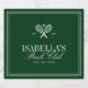 A modern yet vintage-inspired bachelorette sparkling wine label designed in a rich dark green palette, evoking the timeless elegance of old money country club luxury. The front features crossed tennis rackets and a ball, framed with refined detailing, and the words “Bach Club” written in flowing elegant script — a nod to both sporty sophistication and celebratory charm. The design balances classic country club aesthetics with a chic, contemporary twist, perfect for the bride-to-be who loves refined leisure. Perfect for “Last Swing Before the Ring” celebration — blending luxury, tradition, and modern celebration in one cohesive design. Fully editable.