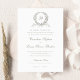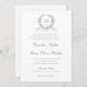 Vintage Elegant Olive Leaf Wreath Monogram Wedding Invitation Template. Traditional Wording Wedding Invitation Template. Elegant Script Calligraphy Wedding Invitation. Vintage Dove Grey Oak Leaf Wreath Wedding Monogram Crest Invitation