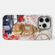 A vintage London, England themed phone case that has old cogs, Big Ben, red roses, a old car and a background of newspapers