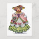Vintage English girl in traditional costume wearing a Elizabethan period dress with farthingale and bows and wearing a hat.