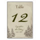 Vintage Evergreen Winter Wedding Table Number
