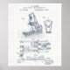 Vintage patent illustration for an 1878 "passive walking machine" known today as a treadmill. Original drawing with added grid line background