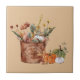 Bring a touch of autumn warmth to your kitchen with these ceramic tiles featuring beautiful watercolor fall and autumn flowers and greenery in shades of terra cotta, rust, copper, and gold in a vintage copper bucket with coloured pumpkins beside it on a pale terra cotta background.