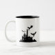 Awaken your inner adventurer with this captivating Vintage Fantasy Dragon Two-Tone Coffee Mug. Featuring a bold black silhouette of a majestic castle under the watchful eyes of soaring dragons, this mug brings a touch of mythical charm to your daily brew. The contrasting black interior adds a stylish flair, making it perfect for your morning coffee, evening tea, or any magical moment in between. A must-have for fantasy enthusiasts and dragon lovers alike!