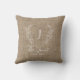 Family personalized monogram, name, and established year elegant chic beige and white rustic country style pillow. +++++++ A modern keepsake gift for weddings, anniversaries, housewarmings, Thanksgiving, Christmas, or any other occasion.